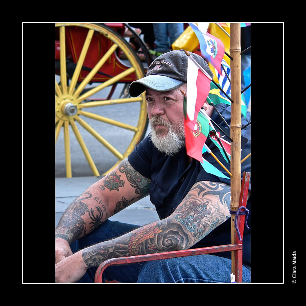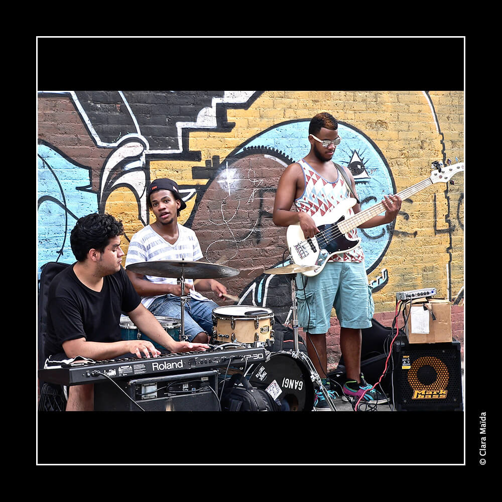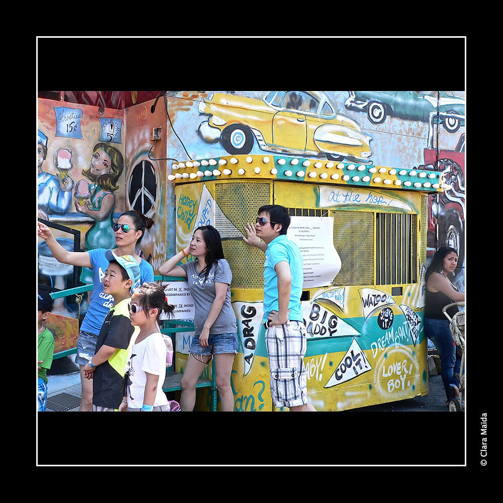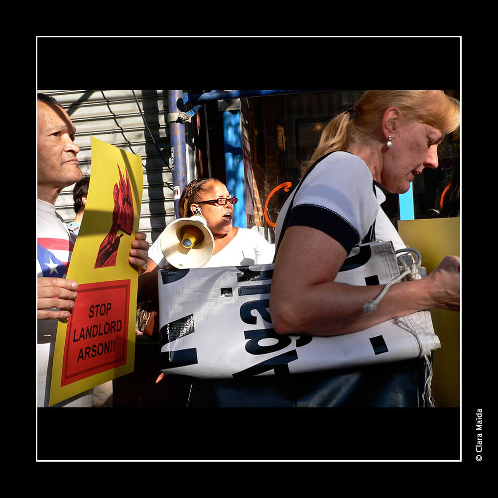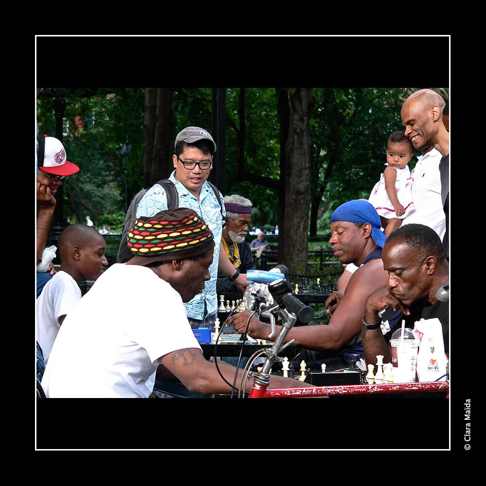 Toute une population diversifiée parcourt les rues de New York. J’ai cherché à capter des situations quotidiennes et le contexte politique et socio-économique qu’elles révélaient ici et là : des modes d’être alternatifs, la pauvreté et l’injustice sociale et économique, les temps d’expression d’une contestation ou les temps de détente dans les squares pendant l’été, les différentes communautés qui se côtoient dans la ville.
