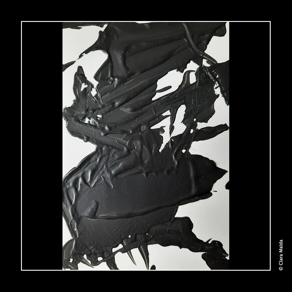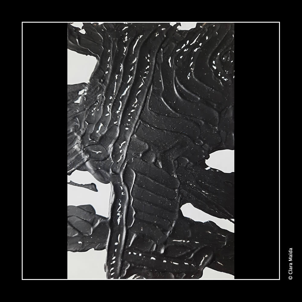 Ces petites peintures sont des explorations préliminaires des techniques utilisées pour la toile Kinêm(a)nima, notamment la bipolarité des couleurs (noir et blanc), la texture ondulatoire travaillée avec du Gesso, ainsi que le travail sur le mouvement et la fluidité des lignes.