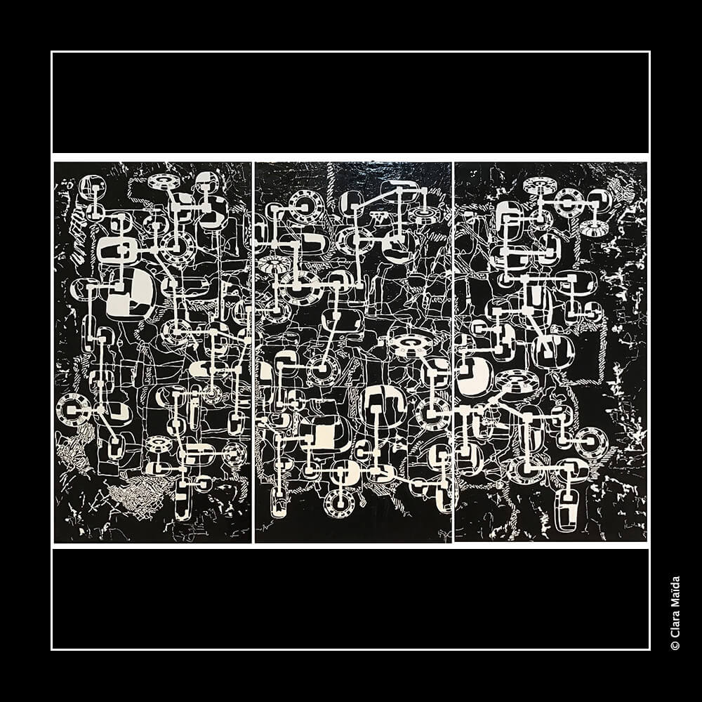 L’accumulation des connexions sonores et visuelles induit la perception d’un tout cinétique et bruitiste où les frontières entre la mécanique psychique et celle des objets disparaît. Quelle place est-il possible de trouver dans un tel système ou au contraire, comment est-il possible de faire un pas de côté et de s’en extirper ?
