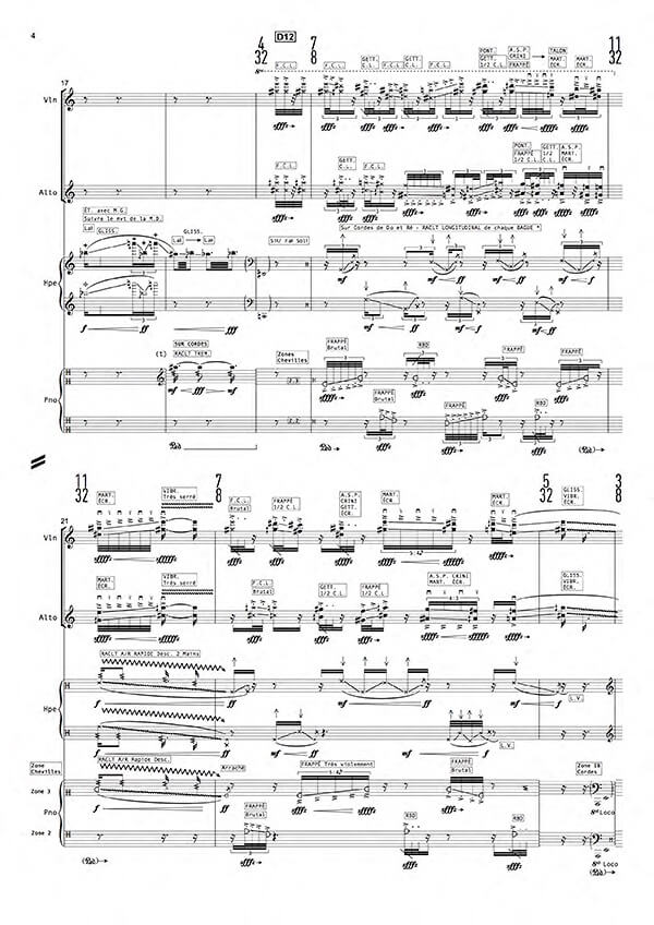 Effectif instrumental : violon, alto, harpe, piano préparé, live électronique et vidéo.